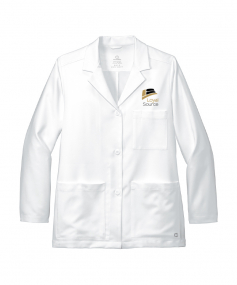 This lab coat is made with 65/35 poly/cotton poplin and features a locker loop, left chest pocket with pen slot, top-loading front pockets, an interior tablet pocket, a back yoke, a 3-button placket opening, center back vent, and the WonderWink® heat transfer logo at left pocket. Medium size is 29.5" back length.